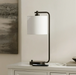 Modern Black USB Port Iron Table Lamp with White 100% Cotton Shade