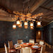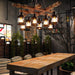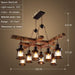 Retro Wood Pendant Lamp Lighting Hanging Lamp E27 Screw Hanging Lamp Solid Wood Wrought Iron Suitable for Restaurant and Bar Night Lighting Energy Saving Lamps,8 Heads